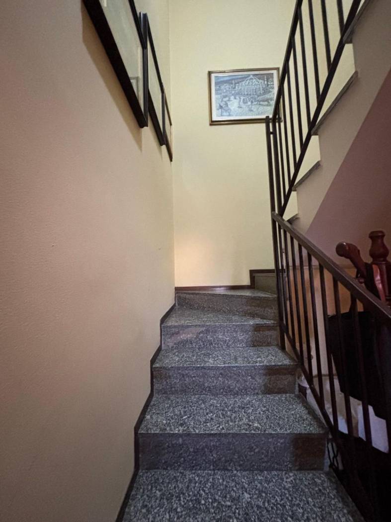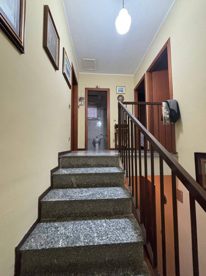 Salendo la scala interna in granito, si accede al piano primo, dove ti attende una sala da pranzo con balcone, una cucina funzionale e tre camere da letto spaziose. Il bagno è ben distribuito e dotato di tutti i comfort. Con una superficie commerciale di 180 m² e un appezzamento di 20 m², questa villetta è perfetta per famiglie che cercano spazio e comodità.